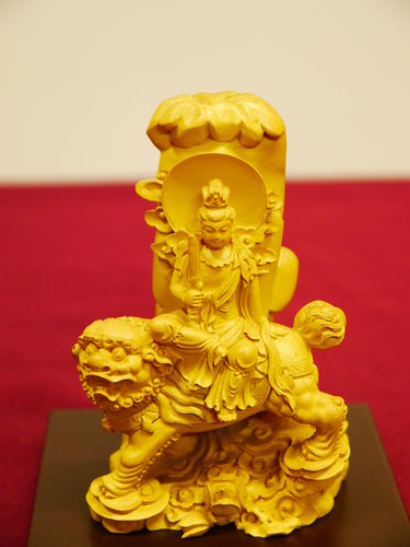 文殊在寺廟大殿裡,通常作為釋迦佛的左脅侍,專司『智慧』,