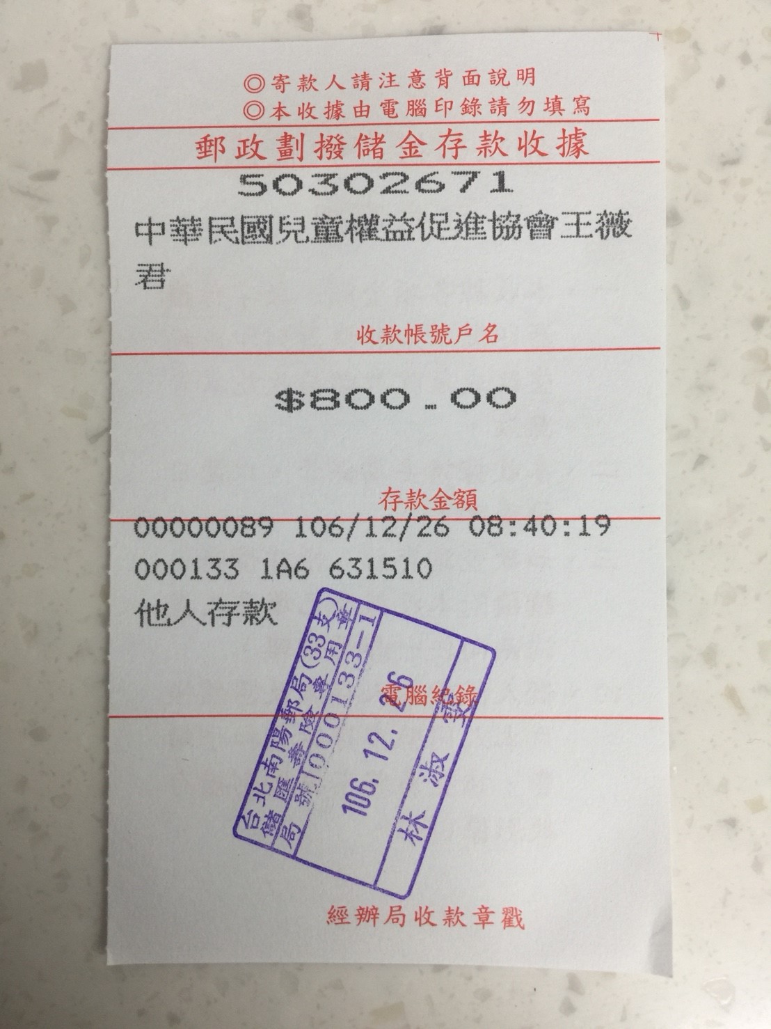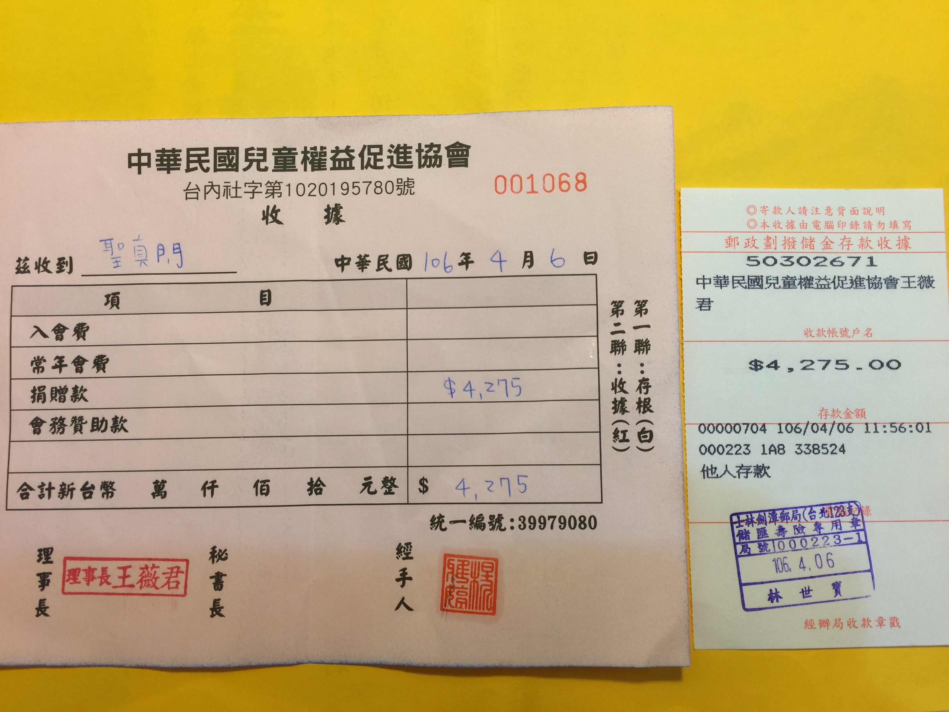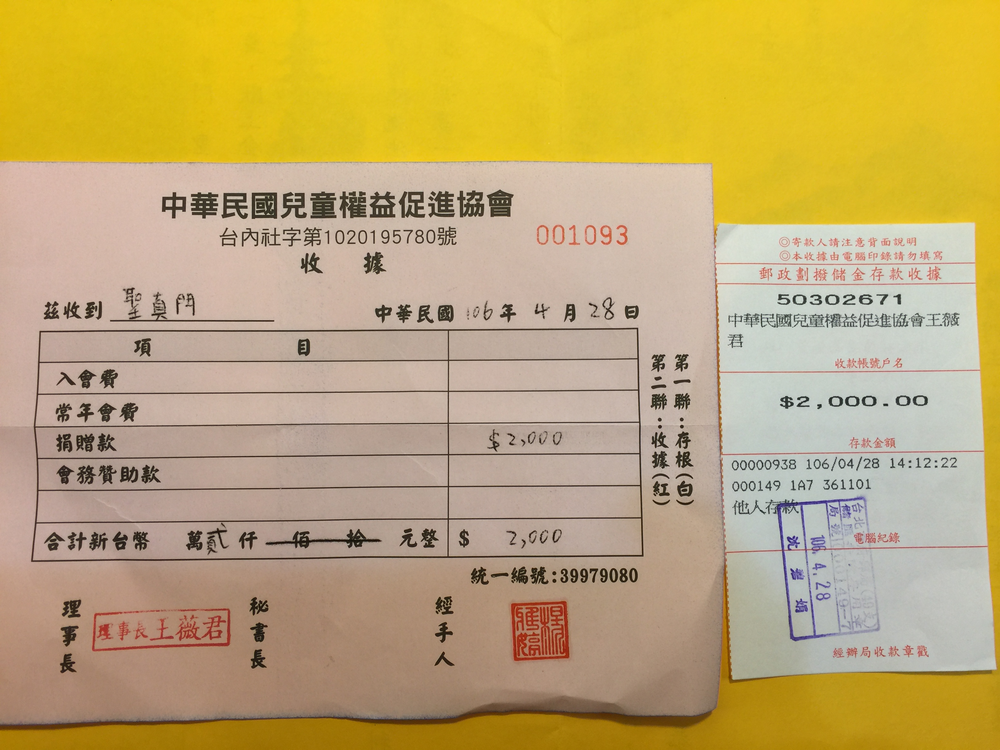 目前捐款單位,主要是中華民國兒童權益促進協會(聖元親自接觸過王姑姑幾次,她是一個認真做事,了不起的人,是可以支持的團體)