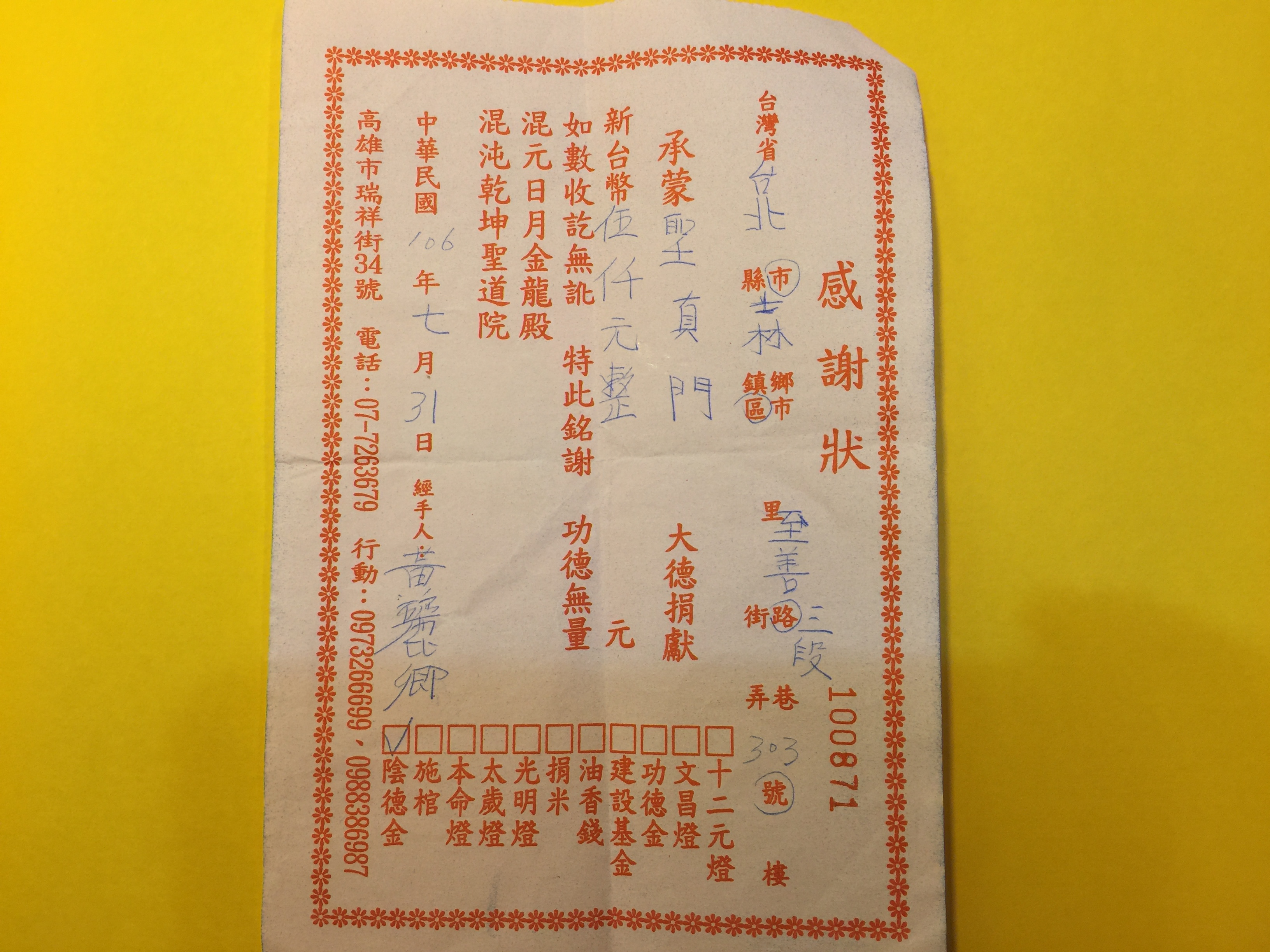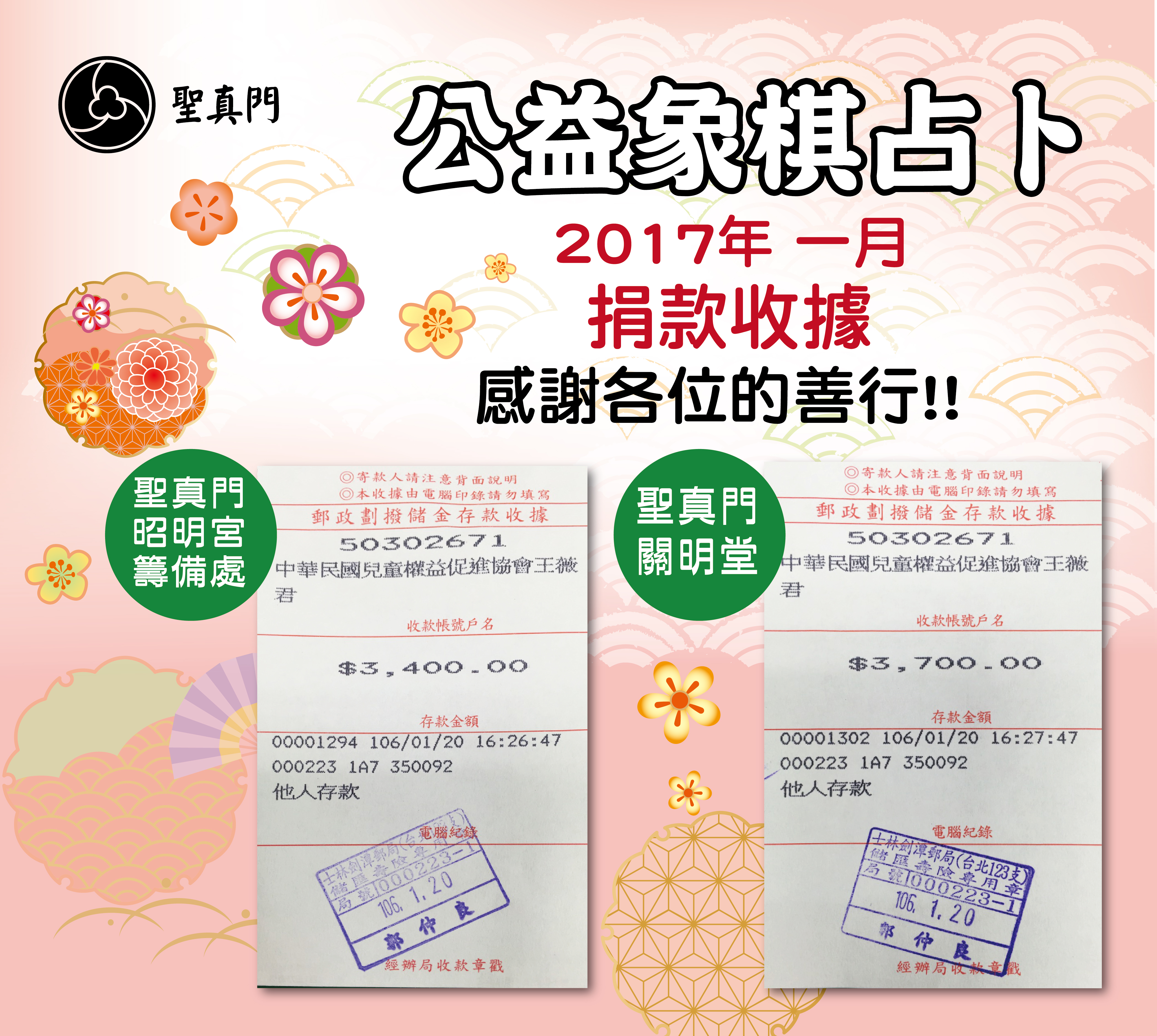 聖真門2017年 定期公益愛心占卜活動 捐款紀錄