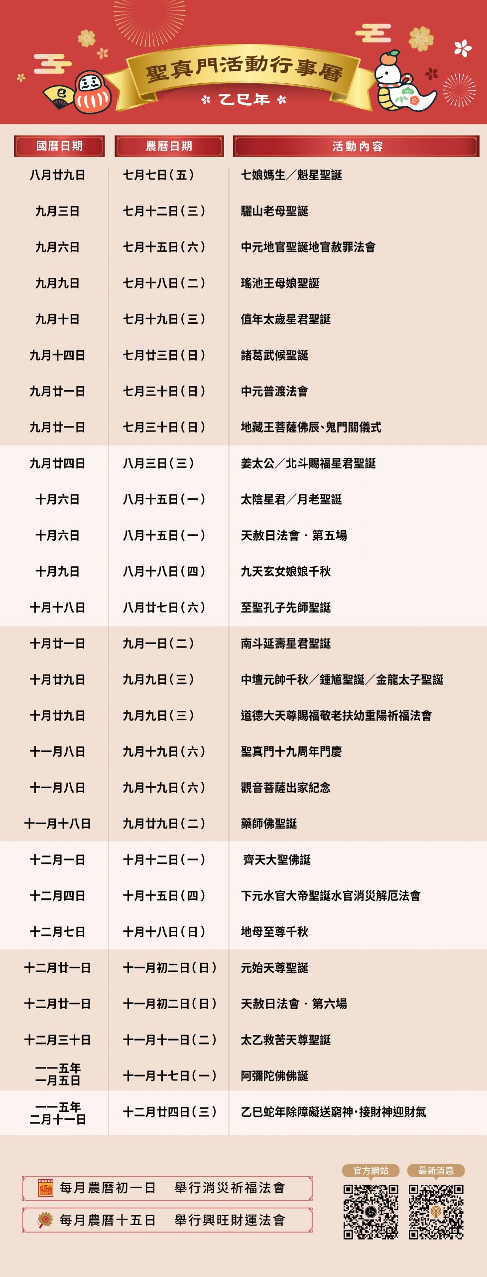 聖真門最新消息|2025年☆乙巳蛇年☆活動行事曆 法會/活動/課程/講座