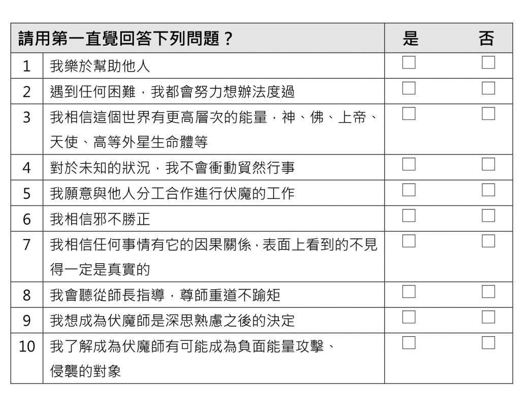 以上十個題目,如果你的回答都是「是」,那麼恭喜你,你便具有成為伏魔師訓練生的基本資格了。