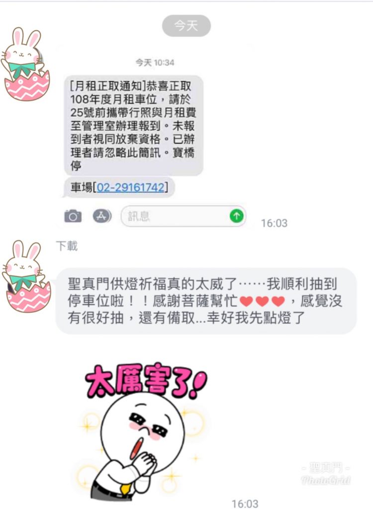 供燈祈求停車位抽籤,果然中籤了!客人開心回饋中籤的喜悅